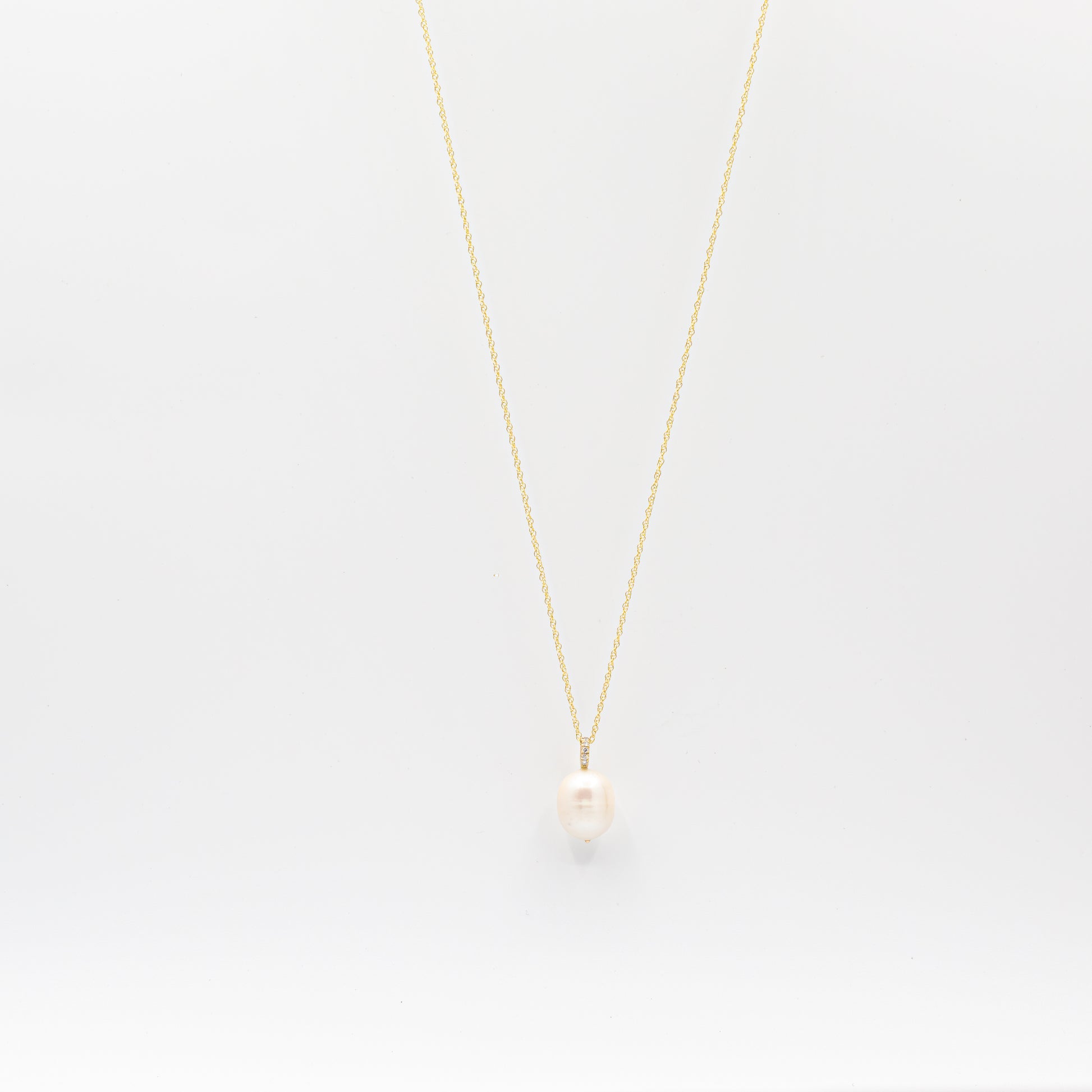 - Material: solid 14k gold + natural baroque pearl + 1mm diamonds